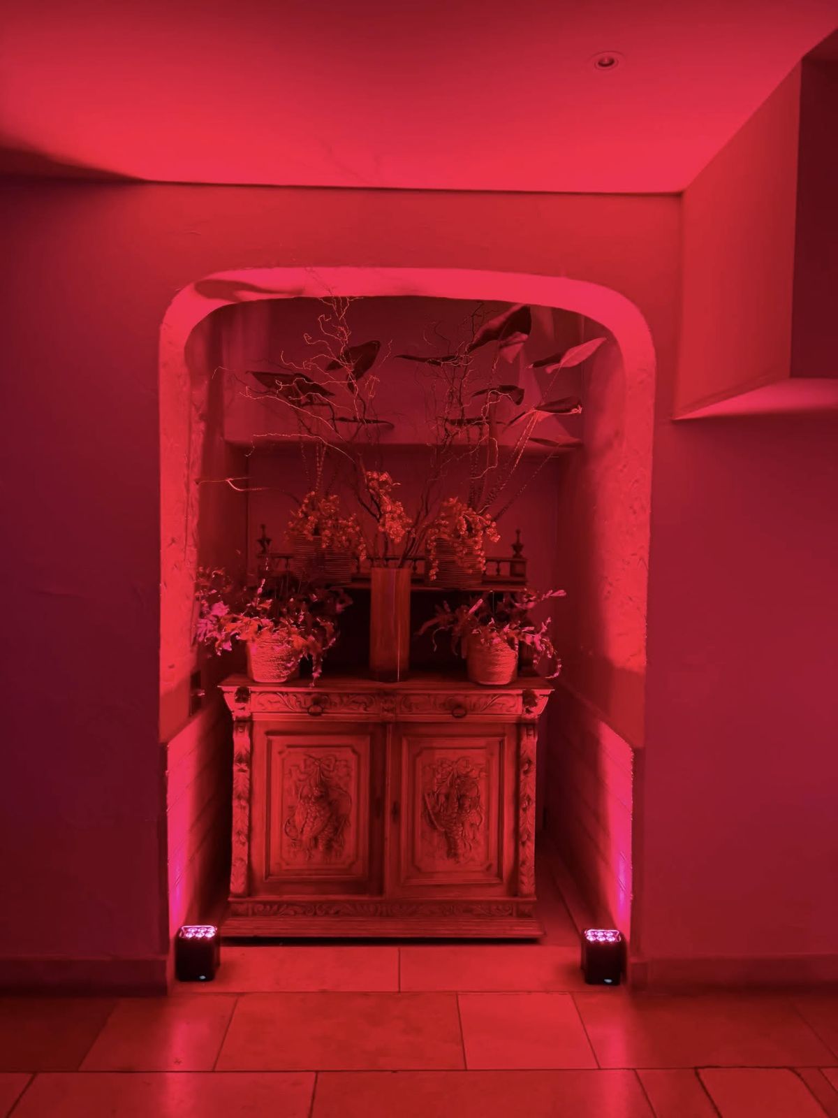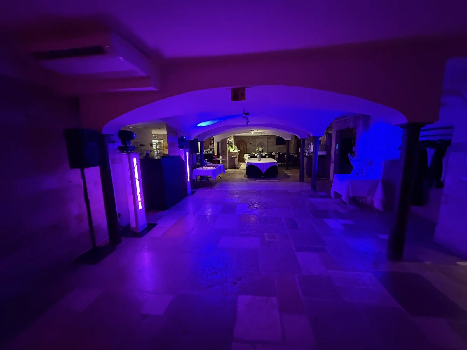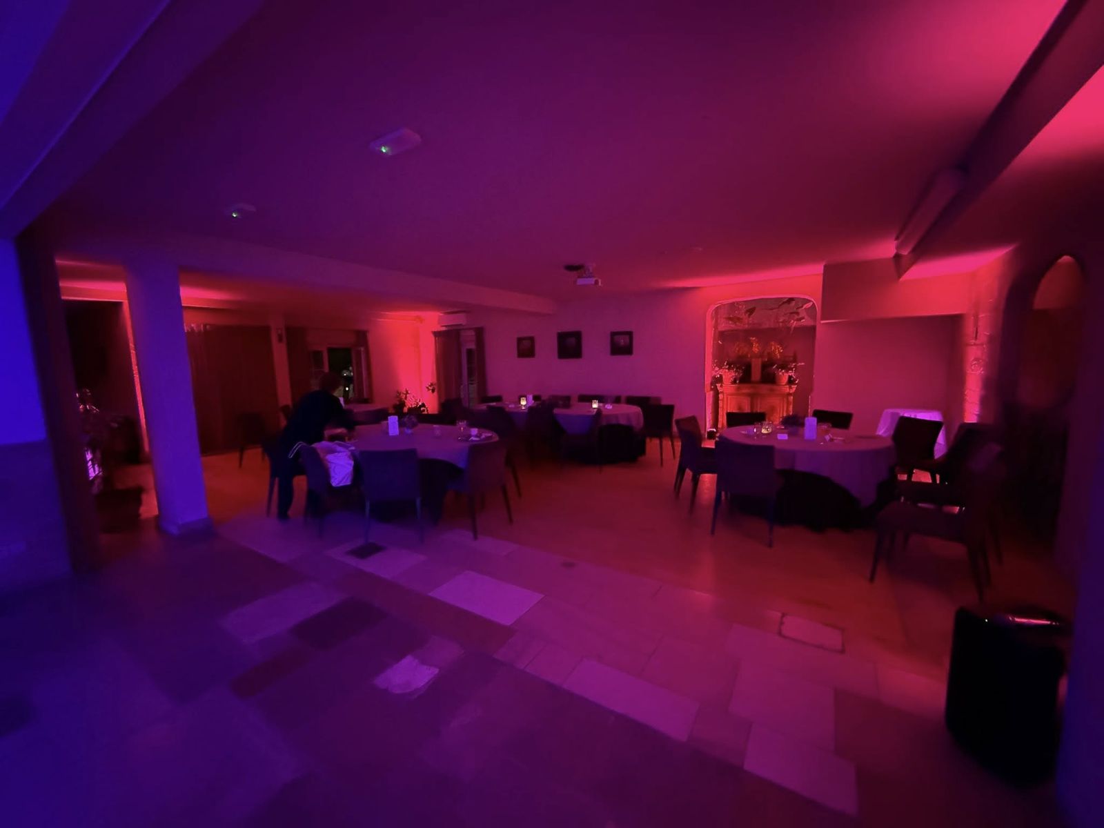 On a placé notre Demi-TotemPack pour la piste de danse, et 8 spots architecturaux (lèche-murs) dans la salle de repas…